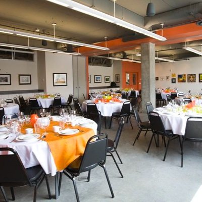 Together the studios can accommodate up to 100 quests for a standing reception or lecture seating or sit-down meal.