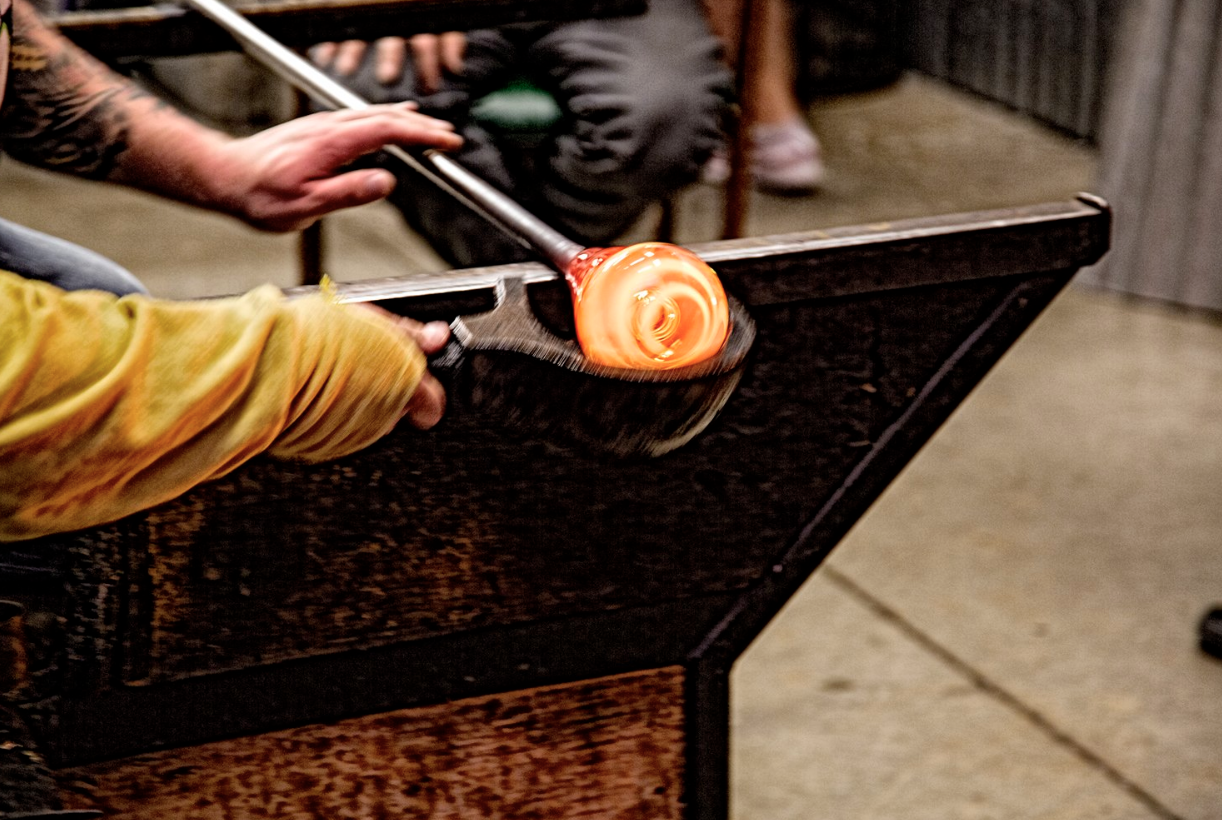 Get a taste of glassblowing while working with our skilled team of glassblowers to create your own blown glass piece in 20 minutes or less! Choose from a float, flower, ornament, drinking glass, mushroom, or heart.